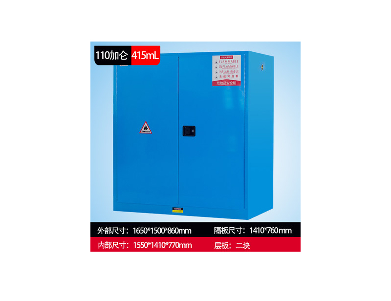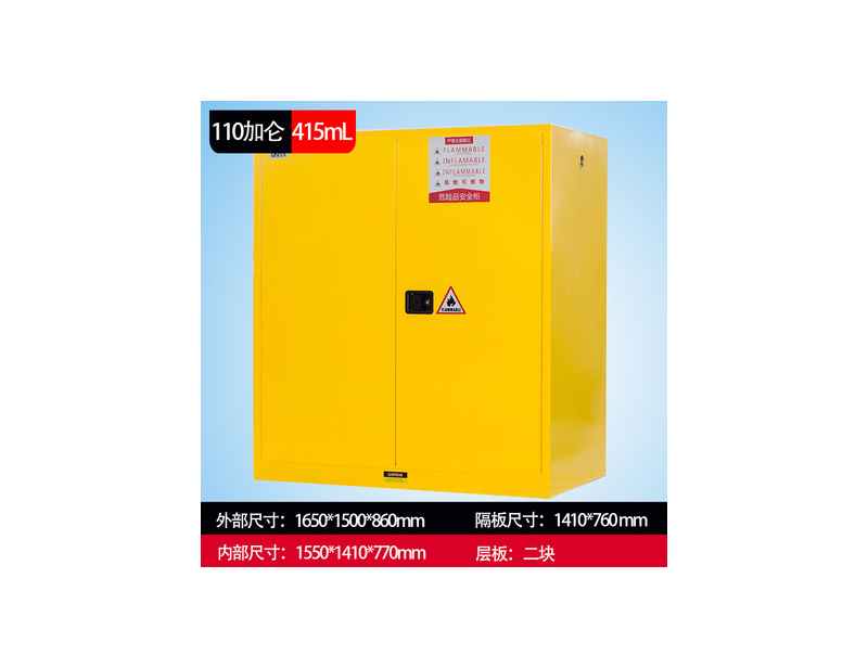 颜色:红色、黄色、蓝色规格:高1650*宽1500*深860mm用途:优质冷轧钢板双层防火结构,可储存:灭火器,油气罐,油桶,油漆,化学品等